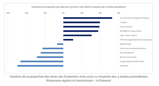 Le secteur « environnement et changement climatique » est désormais le secteur où y a eu le plus de d’opérations en fusions et acquisitions depuis 2020 comparé à une moyenne des 3 années précédentes, cela dit ces opérations englobent tout type d’opération y compris le rapprochement d’entreprise qui est une stratégie de développement qui a été relativement assez envisagée par les dirigeants. Aujourd’hui, les levées de fonds ont tendance à la hausse également étant donné que les dirigeants essayent de s’adapter aux décisions gouvernementales qui concernent ce secteur, comme la loi du 10 février 2020 relative à la lutte contre le gaspillage et à l’économie circulaire.