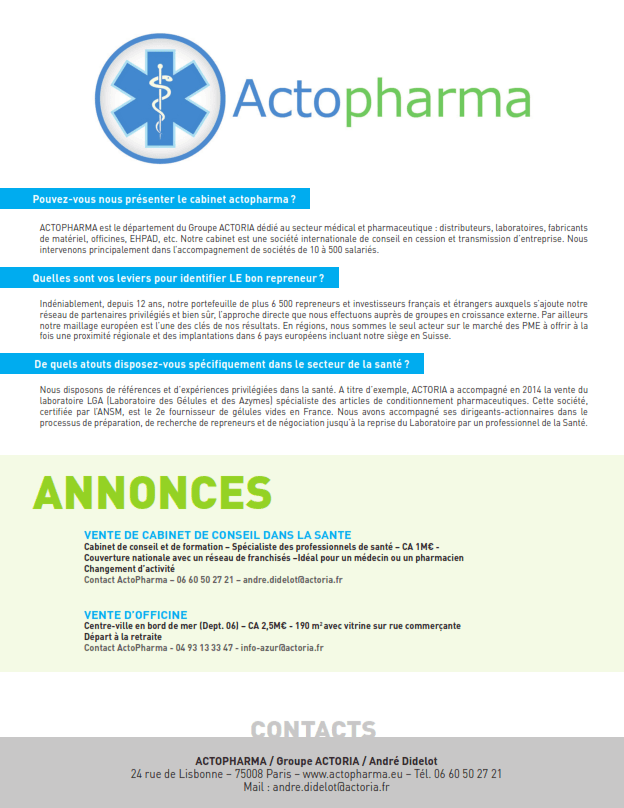 Le département Santé de Actoria cité dans Pharma